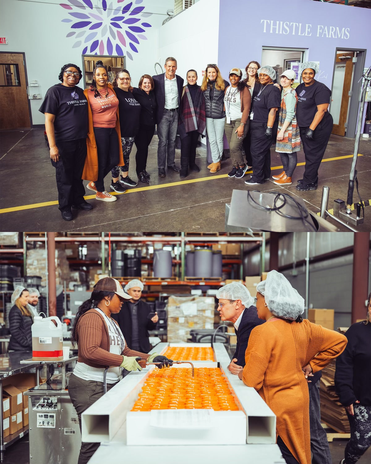 In 2023, Thistle Farms partnered with the office of Tennessee Secretary of State Tre Hargett to launch the Tennessee Businesses Against Trafficking program (TBAT). TBAT aims to empower businesses in the battle against human trafficking by providing training and educational opportunities with the goal of fostering awareness and recognition throughout the state. Learn more about the program and enroll your business for the free training.